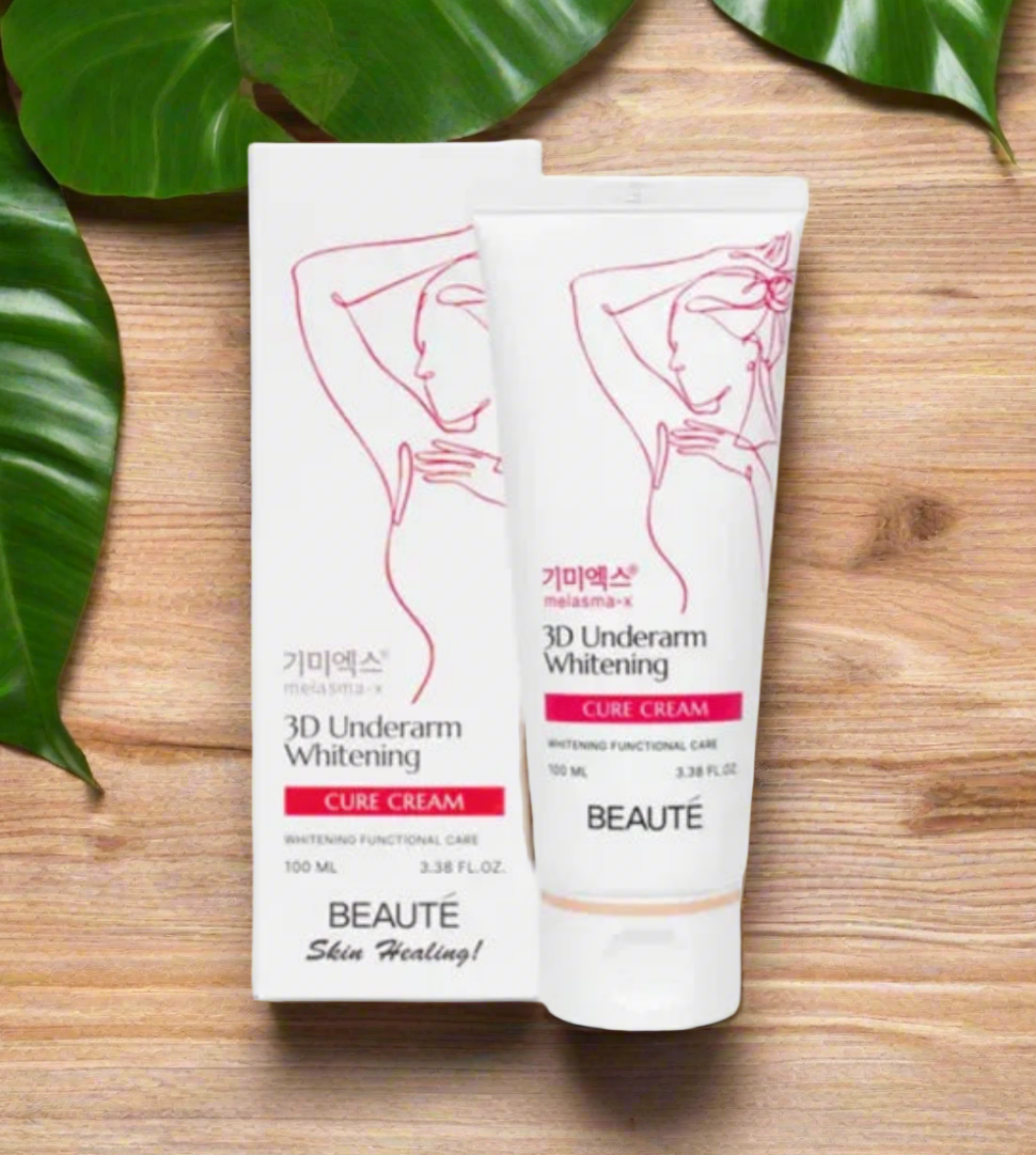 Improve the appearance of your underarms with BEAUTE 3D UNDERARM WHITENING CURE CREAM. This 100ml cream is formulated to effectively whiten, smooth, and nourish the skin, leaving you with visibly brighter and smoother underarms. Say goodbye to dark underarms and hello to confident, even-toned skin.