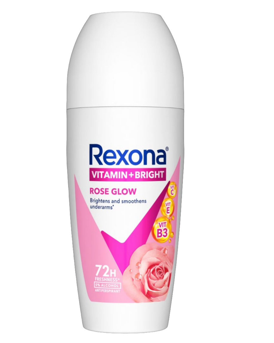 Get long-lasting protection against sweat and body odor with REXONA ROLLON VITAMIN+BRIGHT ROSE GLOW 45 ML. Infused with Vitamin B and brightening rose extracts, this roll-on deodorant keeps you fresh and confident all day long. Enjoy 24-hour protection with a delightful floral scent.